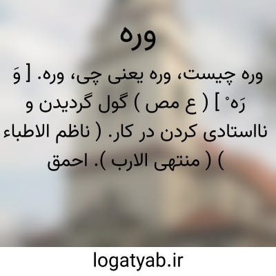 وره. [ وَ رَه ْ ] ( ع مص ) گول گردیدن و نااستادی کردن در کار. ( ناظم الاطباء ) ( منتهی الارب ). احمق گردیدن. ( اقرب الموارد ). || بسیار وزیدن باد. || بسیارپیه گردیدن زن. ( منتهی الارب )( ناظم الاطباء ) ( اقرب الموارد ). || ( اِمص )حماقت و گولی و نااستادی و کودنی. ( ناظم الاطباء ).