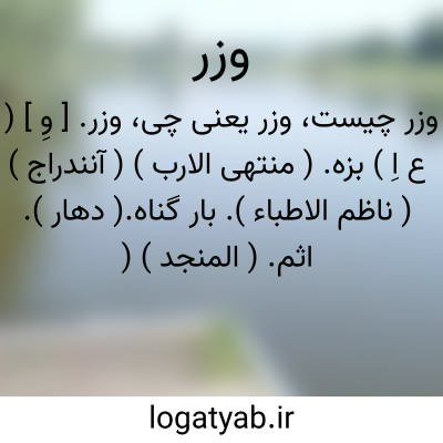وزر. [ وِ ] ( ع اِ ) بزه. ( منتهی الارب ) ( آنندراج ) ( ناظم الاطباء ). بار گناه.( دهار ). اثم. ( المنجد ) ( اقرب الموارد ):