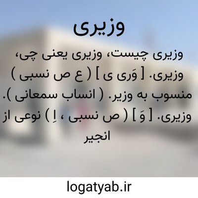 (وَ ) [ ع - فا. ] ۱ - (ص نسب ) منسوب به وزیر. ۲ - (اِ. ) ظرفی پهن کوچک تر از دوری. ۳ - نوعی قطع کتاب به اندازة ۱۶*۵/۲۳ سانتی متر.، ~ بزرگ نوعی کتاب در قطع ۲٠ * ۲۶ سانتی متر.، ~ کوچک کتاب در قطع ۱۳*۲٠ سانتی متر. ۴ - نوعی انجیر.