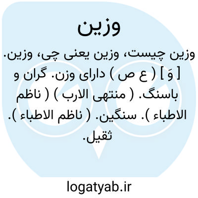 وزین. [ وَ ] ( ع ص ) دارای وزن. گران و باسنگ. ( منتهی الارب ) ( ناظم الاطباء ). سنگین. ( ناظم الاطباء ). ثقیل. || بااهمیت. گرانقدر. ( فرهنگ فارسی معین ): هو وزین الرأی؛ او استواررای و محکم خرد است. ( از ناظم الاطباء ) ( منتهی الارب ) ( اقرب الموارد ). || حنظل آس کرده. ( منتهی الارب ) ( اقرب الموارد ) ( ناظم الاطباء ). حب الحنظل المطحون. ( اقرب الموارد ) ( المنجد ).