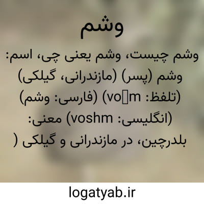 اسم: وشم (پسر) (مازندرانی، گیلکی) (تلفظ: vošm) (فارسی: وشم) (انگلیسی: voshm)