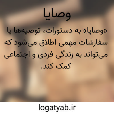 کلمهی «وصایا» جمع واژهی «وصیت» است و به معنای سفارشها، راهنماییها یا دستوراتی است که فرد به دیگران میدهد، به ویژه در هنگام مرگ یا در شرایط خاص. این واژه در زبان عربی از ریشهی «وَصّى» به معنای توصیه یا سفارش کردن گرفته شده است. در فرهنگ اسلامی و دینی، «وصیت» به معنای دستوراتی است که فرد برای امور مالی، خانوادگی یا دینی خود میدهد تا پس از مرگش به آنها عمل شود. به همین دلیل، «وصایا» به مجموعهای از این سفارشها یا دستورات اطلاق میشود. در قرآن کریم و در احادیث دینی، به «وصایا» توجه زیادی شده است و مسلمانان تشویق به انجام وصیت در موقعیتهای خاص میشوند. وصیت ممکن است شامل تقسیم ارث، هدیه دادن مال به نیازمندان، یا توصیههایی برای حفظ اصول اخلاقی و دینی باشد. در متون دینی و فرهنگی، «وصایا» به عنوان راهنماییهای ارزشمندی برای زندگی بهتر و حفظ ارتباط با خدا و دیگران شناخته میشود. در ادبیات فارسی نیز، این واژه به معنای سفارشها یا راهنماییهایی است که فرد به دیگران میدهد. به طور کلی، این واژه به دستورات، توصیهها یا سفارشات مهمی اطلاق میشود که میتواند به زندگی فردی و اجتماعی کمک کند.