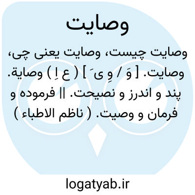 وصایت. [ وَ / وِ ی َ ] ( ع اِ ) وصایة. پند و اندرز و نصیحت. || فرموده و فرمان و وصیت. ( ناظم الاطباء ): در اثنای وصایت پسر خویش مهدی را میگفت. ( کلیله و دمنه ). در مواسات و مراعات اوقاف اقوات او وصایت فرمود. ( ترجمه تاریخ یمینی ).