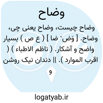 وضاح. [ وَض ْ ضا ] ( ع ص ) بسیار واضح و آشکار. ( ناظم الاطباء ) ( اقرب الموارد ). || دندان نیک روشن و آشکارا. ( منتهی الارب ) ( ناظم الاطباء ). || سفیدفام نیکوروی و خندان. ( اقرب الموارد ). مرد سپید و نیکورنگ.( منتهی الارب ) ( آنندراج ) ( ناظم الاطباء ):