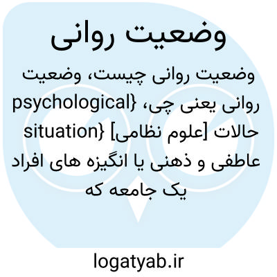 {psychological situation} [علوم نظامی] حالات عاطفی و ذهنی یا انگیزه های افراد یک جامعه که ویژگی های ملی و اجتماعی و اقتصادی و روان شناختی آنها را شکل می دهد و شرایط و حوادث جاری نیز بر آنها تأثیر می گذارد