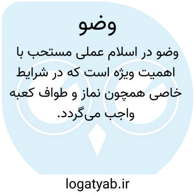 [ویکی شیعه] وُضو، شستن صورت و دست ها و همچنین مسح سر و پاها با آدابی خاص که به خودی خود مستحب است، اما شرط درستی نماز و طواف و عبادات دیگر است. بدون وضو، لمس خط قرآن و لمس نام خدا جایز نیست. وضو گرفتن در مواردی از جمله رفتن به مسجد و قرائت قرآن کریم، مستحب شمرده شده است. بنابر منابع تاریخی، وضو در آغاز بعثت پیامبر، در مکه تشریع شد. آیه ششم سوره مائده، و همچنین بیش از چهارصد روایت از معصومان، درباره وضوست.