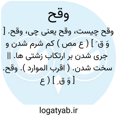 وقح. [ وُ / وُ ق ُ ] ( ع مص ) وقوحة. قحة. شوخ گرفتن. || سخت شدن سم. ( آنندراج ) ( منتهی الارب ). || ( اِمص ) شوخی. ( منتهی الارب ).