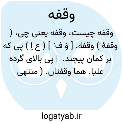 (اسم ) ۱- توقف ایست: (( چو یوسف شربتی در دلو خورده چو یونس شربتی در حوت کرده. ) ) ( گنجین. گنجوی ) ۲- توقف درحرفی از کلمه. ۳- فراغت فرصت. ۴- توقف بین دومقام (ابن العربی ) علت وقفه آن است که سالک حقوق مقامی را که از آن بیرون آمده ادا نکرده و هنوز مستحق دخول در مقام بالاتر نیست بنابراین بین دو مقام سر گردان است. ۵ - تعطیل. یا ایجاد وقفه کردن. تعطیل کردن. یا وقفه حاصل شدن ( پیدا شدن ). موقتا تعطیل شدن.