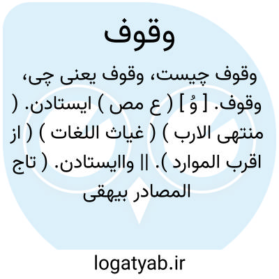 (وُ ) [ ع. ] (اِمص. ) ۱ - ایستادگی، ایست. ۲ - آگاهی، بصیرت.