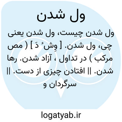 ول شدن. [ وِش ُ دَ ] ( مص مرکب ) در تداول، آزاد شدن. رها شدن. || افتادن چیزی از دست. || سرگردان و ولگرد شدن. || سقوط کسی یا چیزی ( از بالا به پائین ). ( از فرهنگ لغات عامیانه جمال زاده ).