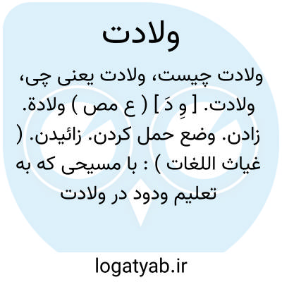 ولادت. [ وِ دَ ] ( ع مص ) ولادة. زادن. وضع حمل کردن. زائیدن. ( غیاث اللغات ):