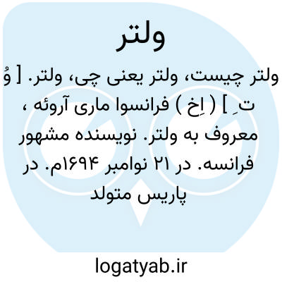 ولتر. [ وُ ت ِ ] ( اِخ ) فرانسوا ماری آروئه، معروف به ولتر. نویسنده مشهور فرانسه. در 21 نوامبر 1694م. در پاریس متولد شد و در 30 مه 1778م. در همان شهر درگذشت. وی درجوانی از حکومت استبدادی رنج بسیار دید چنانکه در 23سالگی به گناه سرودن اشعاری در هجو نایب السلطنه فرانسه به زندان باستیل افتاد و یازده ماه در زندان ماند، ولی چون رهائی یافت نایب السلطنه برای او صد لیورشهریه مقرر داشت. آثار معروف ولتر در دوران جوانی بیشتر از جمله قطعات نمایش و مباحث تاریخی و علمی است و از معروفترین آنها قطعه بروتوس در تاریخ شارل دوازدهم و اصول فلسفه نیوتن و قرن لوئی چهاردهم و بحث در اخلاق ملل است. ولتر در سال 1750 به دعوت فردریک دوم پادشاه پروس به درباروی رفت و تا سال 1753 در خدمت آن پادشاه به سر برد.فردریک با او مانند دوستی نزدیک رفتار میکرد چنانکه برای او در قصر پوتسدام عمارتی پایین تر از عمارت خصوصی خویش تعیین کرده بود و با وی بر یک خوان می نشست.وظیفه ولتر تنها این بود که در آثار قلمی فردریک از لحاظ ادبی نظر کند. این نزدیکی سبب شهرت فوق العاده او شد و نامش در سراسر اروپا بر سر زبانها افتاد ودر این زمان او را «شاه ولتر» میخواندند. در سال 1753 میان ولتر و فردریک بر هم خورد و به فرانسه بازگشت ولی لوئی پانزدهم به وی خوشبین نبود. ولتر برای آنکه از خطر توقیف و زندان ایمن باشد در مزرعه ای نزدیک مرز فرانسه و سویس مسکن گزید ( 1755 ) و 23 سال باقی عمر را در آنجا به سر برد. آثار این دوره از عمر او بیشتر به صورت نامه و مکتوب انتشار یافته که جمع آنهاقریب ده هزار است. ولتر در سیاست و فلسفه بانی اساس تازه ای نگردید، بلکه به قول خود اساس گذشته را ویران کرد. نسبت به دین مسیح نیز خصومت می ورزید و در این دشمنی گاه از سرحد غرض و اتهام و دروغ نیز میگذشت.
