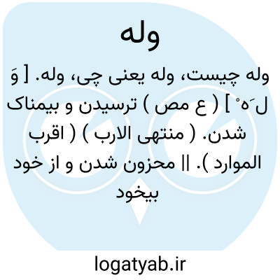 وله. [ وَ ل َه ْ ] ( ع مص ) ترسیدن و بیمناک شدن. ( منتهی الارب ) ( اقرب الموارد ). || محزون شدن و از خود بیخود شدن از اندوه. ( اقرب الموارد ). || متحیر و سرگشته شدن از شدت وجد. ( اقرب الموارد ). متحیر شدن. ( تاج المصادر ). || بیتابی کردن طفل برای مادر. ( اقرب الموارد ). || ( اِمص ) بیم. || اندوه. || بیخودی از اندوه. || سرگشتگی.حیرت. حیرانی. || سرگشتگی از عشق. ( منتهی الارب ). افراط در وجد و عشق. ( تعریفات ):