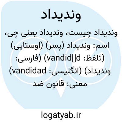 معنی: قانون ضد ( علیه ) دیو، به معنی قانون ضد ( علیه ) دیو، ( اَعلام ) بخشی از اوستا شامل فصل، که بیشتر درباره ی حلال و حرام در آیین زرتشت است