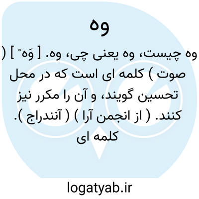 (وَ ) (صت. ) کلمه ای است دال بر: الف - تعجب، شگفتی. ب - تحسین، آفرین.