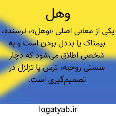 کلمهی «وهل» در فارسی و عربی دارای چند معنا و کاربرد مختلف است که بسته به زمینه استفاده، مفهوم آن تغییر میکند. یکی از معانی اصلی آن، ترسنده، بیمناک یا بددل بودن است و به شخصی اطلاق میشود که دچار سستی روحیه، ترس یا تزلزل در تصمیمگیری است. علاوه بر این، «وهل» به معنای سست شدن، گمان بردن در چیزی، فراموش کردن یا اشتباه کردن نیز به کار رفته و نشاندهنده ضعف یا ناپایداری در عمل یا ذهن است. در متون ادبی، واژه «وهل» برای بیان اشتباه، سهو یا نسیان و همچنین حالتهای روانی مانند بیم و نگرانی استفاده میشود. معنای دیگر «وهل» به گیاهان مربوط است و به درخت کاج، صنوبر یا برخی انواع سرو کوهی گفته میشود که در فارسی گاهی با نامهای ابهل یا عرعر نیز شناخته میشود و چوب و برگ آنها در صنایع مختلف کاربرد دارد.