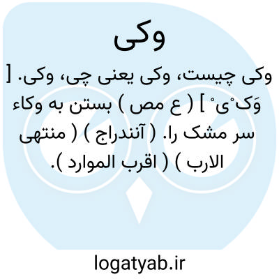 وکی. [ وَک ْی ْ ] ( ع مص ) بستن به وکاء سر مشک را. ( آنندراج ) ( منتهی الارب ) ( اقرب الموارد ).