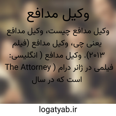 وکیل مدافع (فیلم ۲۰۱۳). وکیل مدافع ( انگلیسی: The Attorney ) فیلمی در ژانر درام است که در سال ۲۰۱۳ منتشر شد. از بازیگران آن می توان به سونگ کانگ - هو، کیم یونگ آئه، و کواک دو - وان اشاره کرد.