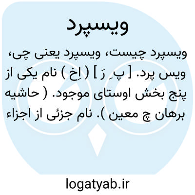 ویس پرد. [ پ ِ رَ ] ( اِخ ) نام یکی از پنج بخش اوستای موجود. ( حاشیه برهان چ معین ). نام جزئی از اجزاء اوستای امروزی است شامل آداب پرستش. ( یادداشت مرحوم دهخدا ).