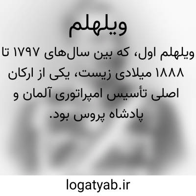 نام چند تن از امپراطوارن آلمان و پادشاهان پروس. ویلهلم اول. ( ۱۸۸۸ - ۱۷۹۷ م. ) در ۱۸۵۸ م. نایب السلطنه برادر بیمارش فردریک ویلهلم چهارم شد در ۱۸۶۱ جانشین او گشت. در ۱۸۶۲ بیسمارک را به صدارت عظمی برگزید. شخصا در جنگ فرانسه و پروس فرماندهی داشت و پس از این جنگ در تالار آئینه کاخ ورسای به امپراطوری آلمان رسید ( ۱۸۷۱م. ) سرنوشت واقعی آلمان و پروس را در زمان وی در حقیقت بیسمارک داشت و امپراطور فقط مظهری از وحدت آلمان بود. پسرش فردریک سوم جانشین او شد. یا ویلهلم دوم. ویلهلم دوم مردی مغرور و جاه طلب بود از این رو میان وی و بیسمارک اختلاف تولید شد. و ویلهلم او را در ۱۸۹٠ از کار بر کنار کرد. برنامه های جاه طلبانه نظامی استعماری و اقتصادی وی سبب بروز نقار و مخالفت میان بریتانیا و آلمان و دوستی با فرانسه شد. شکست وی در انعقاد پیمان دوستی با روسیه و دخالت در امور بالکان به تشکیل اتحاد مثلث کمک کرد.افزایش بیش از حد قوای مسلح او و سوئ تدبیرش تا حدی از مسببات جنگ جهانی اول بود. چون آلمانها شکست خوردند متفقین شرط مقدماتی پیمان صلح را استعفای وی از سلطنت قرار دادند از این رو در ۱۹۱۸ مردم آلمان علیه او شوریدند و ویلهلم به هلند گریخت و اندکی بعد استعفا داد.