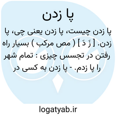 پا زدن. [ زَ دَ ] ( مص مرکب ) بسیار راه رفتن در تجسس چیزی: تمام شهر را پا زدم.