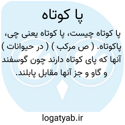 ( صفت ) ۱- حیواناتی که پای کوتاه دارند چون گاو و گوسفند و جز آنها مقابل پا بلند. ۲- انسان یا حیوانی که در اثر ضایعه ای پاهایش از معمول کوتاهتر باشد.