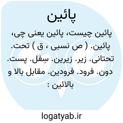 پائین. ( ص نسبی، ق ) تحت. تحتانی. زیر. زیرین. سِفل. پست. دون. فرود. فرودین. مقابل بالا و بالائین: