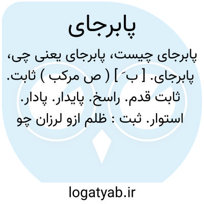 پابرجای. [ ب َ ] ( ص مرکب ) ثابت. ثابت قدم. راسخ. پایدار. پادار. استوار. ثبت: