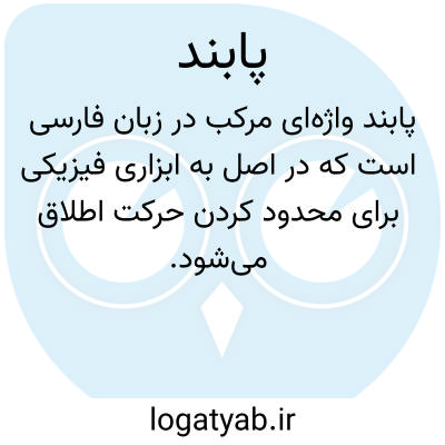 واژه‌ای مرکب در زبان فارسی است که در اصل به ابزاری فیزیکی برای محدود کردن حرکت اطلاق می‌شود. این کلمه به معنای عام، به هرگونه نوار، طناب، یا بندی اطلاق می‌گردد که به پای ستور (اسب، قاطر و...) بسته شده و سپس به میخ یا مانعی ثابت گره زده می‌شود تا از حرکت آزادانه حیوان جلوگیری به عمل آید؛ در این مفهوم، معادل‌هایی چون شکال و «رِساغ/رِصاغ» نیز برای آن به کار رفته است. علاوه بر این کاربرد دامی، پابند همچنین به بندی اطلاق می‌شود که بر پای مجرمان یا زندانیان نهاده می‌شود تا مانع از فرار ایشان گردد که در این معنا به آن پاوَند نیز گفته می‌شود.