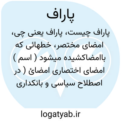 ( اسم ) امضای اختصاری امضائ ( در اصطلاح سیاسی و بانکداری معمول است )