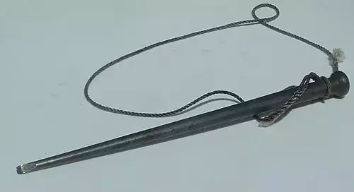 وسیله‌ای مخروطی از فلز یا چوب برای فاصله انداختن میان رشته‌های طناب یا بافۀ فلزی و رد کردن رشته‌های طناب یا بافۀ فلزی دیگر به‌منظور در هم بافتن آنها.