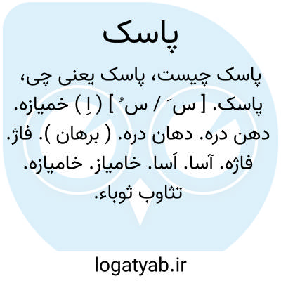 پاسک. [ س َ / س ُ ] ( اِ ) خمیازه. دهن دره. دهان دره. ( برهان ). فاژ. فاژه. آسا. اَسا. خامیاز. خامیازه. تثاوب ثوباء. رجوع به آسا شود.