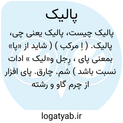 پالیک. ( اِ مرکب ) ( شاید از «پا» بمعنی پای، رِجل و«لیک » ادات نسبت باشد ) شم. چارق. پای افزار از چرم گاو و رشته ها در او بسته. ( لغت نامه اسدی ). پای افزار از چرم گاو و رشته ها در او بسته بموضع و در آذربایجان آنرا شم خوانند. ( فرهنگ اسدی نسخه نخجوانی ). پای افزار بود، به آذربایجان چارق خوانند. ( فرهنگ اسدی چ تهران ). کفش و پای افزار چرمین. ( برهان ):