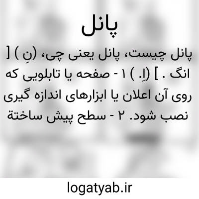 (نِ ) [ انگ. ] (اِ. ) ۱ - صفحه یا تابلویی که روی آن اعلان یا ابزارهای اندازه گیری نصب شود. ۲ - سطح پیش ساختة نسبتاً بزرگی که آن را به صورت دیوار یا سقف نصب می کنند. ۳ - گروهی از افراد متخصص و صاحب نظر که برای بحث یا داوری دربارة موضوعی گرد هم آیند، هیئت ر