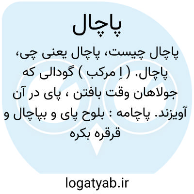 پاچال. ( اِ مرکب ) گودالی که جولاهان وقت بافتن، پای در آن آویزند. پاچامه: بلوح پای و بپاچال و قرقره بکره بنایژه بمکوک و بتاروپود ثیاب.خاقانی.|| گوی که استادان بقال و نانوا و آشپز در آن ایستند و چیزی فروشند. || گودالی که شیر در آن گرد کنند فروختن را.