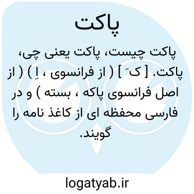 ( اسم ) ۱- محفظ. کاغذ که نامه و غیره را در آن گذارند و فرستند. ۲- بسته جعبه: یک پاکت سیگار. جمع: پاکات