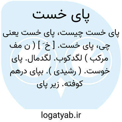 پای خست. [ خ َ ] ( ن مف مرکب ) لگدکوب. لگدمال. پای خوست. ( رشیدی ). بپای درهم کوفته. زیر پای کوفته. ( حاشیه فرهنگ اسدی نسخه نخجوانی ). پای خاسته. ( جهانگیری ). خسته بپا. کوفته بپا. پای خسته. هرچیز که در زیر پا کوفته و مالیده شده باشد اعم از زمین و چیز دیگر. ( برهان ). زمین باشد یا چیزی که بپای کوفته باشند. ( از فرهنگی خطی ):