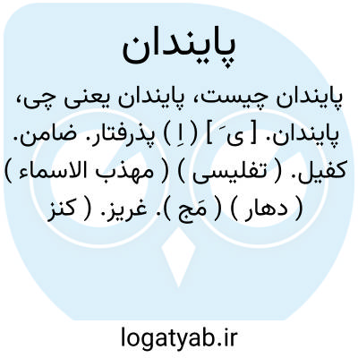 پایندان. [ ی َ ] ( اِ ) پذرفتار. ضامن. کفیل. ( تفلیسی ) ( مهذب الاسماء ) ( دهار ) ( مَج ). غریز. ( کنز اللغات ). پایندانی کننده. ( کنز اللغات ). زعیم. ( مج ) ( مهذب الاسماء ). قبیل. ضمین. حمیل: گفتم اگر این مال امروز نتواند داد مهتری وثیقه و پایندان بستانم شاید؟ گفت نه. ( تاریخ طبری ترجمه بلعمی ). و اَنا به ِ زعیم، من بآن پایندانم. ( تفسیر ابوالفتوح رازی ). بوم و جغد و زاغ سیاه و عکه و گنجشک این پنج مرغ پایندان شدند. ( قصص الانبیاء ). گفت بکن آنچه خواهی گفت پایندانی باید از مرغان که با وی هم اعتقاد بودند. ( قصص الانبیاء ).
