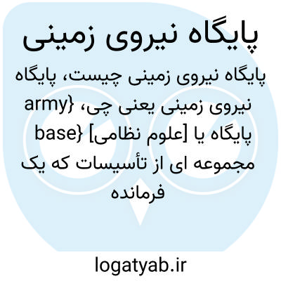 {army base} [علوم نظامی] پایگاه یا مجموعه ای از تأسیسات که یک فرمانده مسئولیت آن را بر عهده دارد و شامل تسهیلات لازم برای پشتیبانی از فعالیت های نبرد زمینی است