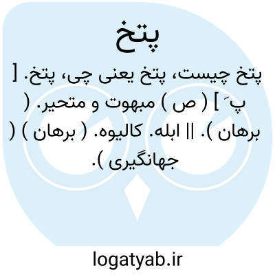 پتخ. [ پ َ ] ( ص ) مبهوت و متحیر. ( برهان ). || ابله. کالیوه. ( برهان ) ( جهانگیری ).