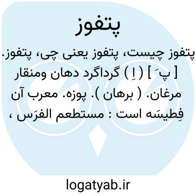 پتفوز. [ پ َ ] ( اِ ) گرداگرد دهان ومنقار مرغان. ( برهان ). پوزه. معرب آن فِطیسَه است: مستطعم الفرَس، پتفوز اسب. ( منتهی الارب ):