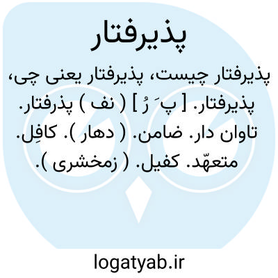 پذیرفتار. [ پ َ رُ ] ( نف ) پذرفتار. تاوان دار. ضامن. ( دهار ). کافِل. متعهّد. کفیل. ( زمخشری ). ضمین. قبیل. پایندان: بندوی و بسطام خالان پرویز که اندر زندان باز داشته بودند این خبر بشنیدند بندوی سوی مهتران لشکر کس فرستاد که تا کی بلای وی کشید او را از ملک بازکنید. و پسرش پرویز از آذربایجان بیاورید و بپادشاهی بنشانید و ما هر دو شما راپذیرفتاریم از پرویز بهمه نیکوئی و داد پس مردمان را از این سخن خوش آمد. ( تاریخ طبری ترجمه بلعمی ).