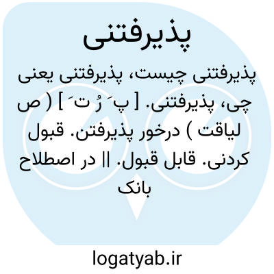 پذیرفتنی. [ پ َ رُ ت َ ] ( ص لیاقت ) درخور پذیرفتن. قبول کردنی. قابل قبول. || در اصطلاح بانک سندی که قابل قبول باشد.