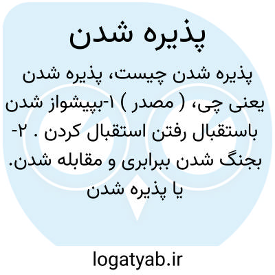 ( مصدر ) ۱-بپیشواز شدن باستقبال رفتن استقبال کردن. ۲- بجنگ شدن ببرابری و مقابله شدن. یا پذیره شدن سخنی را.پذیرفتن آن قبول کردن آن.