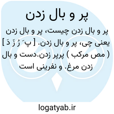 پر و بال زدن. [ پ َ رُ زَ دَ ] ( مص مرکب ) پرپر زدن.دست و بال زدن مرغ. و نفرینی است: پر و بال بزنی !
