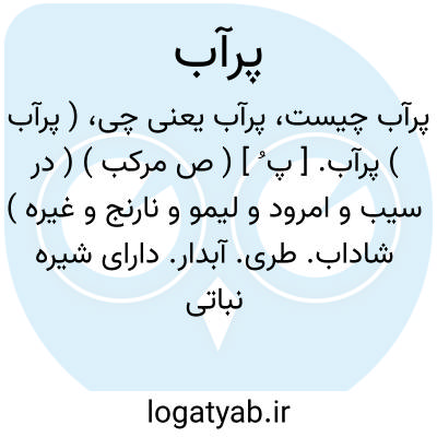 ( پرآب ) پرآب. [ پ ُ ] ( ص مرکب ) ( در سیب و امرود و لیمو و نارنج و غیره ) شاداب. طری. آبدار. دارای شیره نباتی بسیار: دانه [ انگور ] از خوشه ریختن آغاز کرده و پرآب است دلیل میکند که فائده این در آب این است. ( نوروزنامه ).