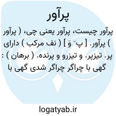 لغت نامه دهخدا ( پرآور ) پرآور. [ پ َ وَ ] ( نف مرکب ) دارای پر. تیزپر. و تیزرو و پرنده. ( برهان ): گهی با چراگر چراگر شدی گهی با پرنده پرآور شدی.خواجو ( همای و همایون ).