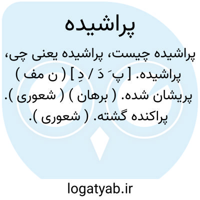 پراشیده. [ پ َ دَ / دِ ] ( ن مف ) پریشان شده. ( برهان ) ( شعوری ). پراکنده گشته. ( شعوری ). پراکنده. پریشان. ولاو. وِلو. تار و مار. بشولیده. پشولیده. پاچیده. پاشیده. پرت و پلا. ترت و پرت. پریش. پریشیده. پخش. متفرق. ریخته پاشیده: