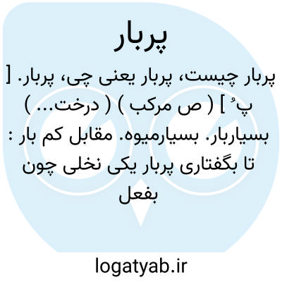 ( صفت ) ۱- درختی که بار بسیار دارد پر میوه پر ثمر مقابل کم بار. ۲- که شار و غش بسیار دارد (زر و سیم و غیره ).