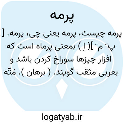پرمه. [ پ َ م َ ]( اِ ) بمعنی پرماه است که افزار چیزها سوراخ کردن باشد و بعربی مثقب گویند. ( برهان ). مَتّه: